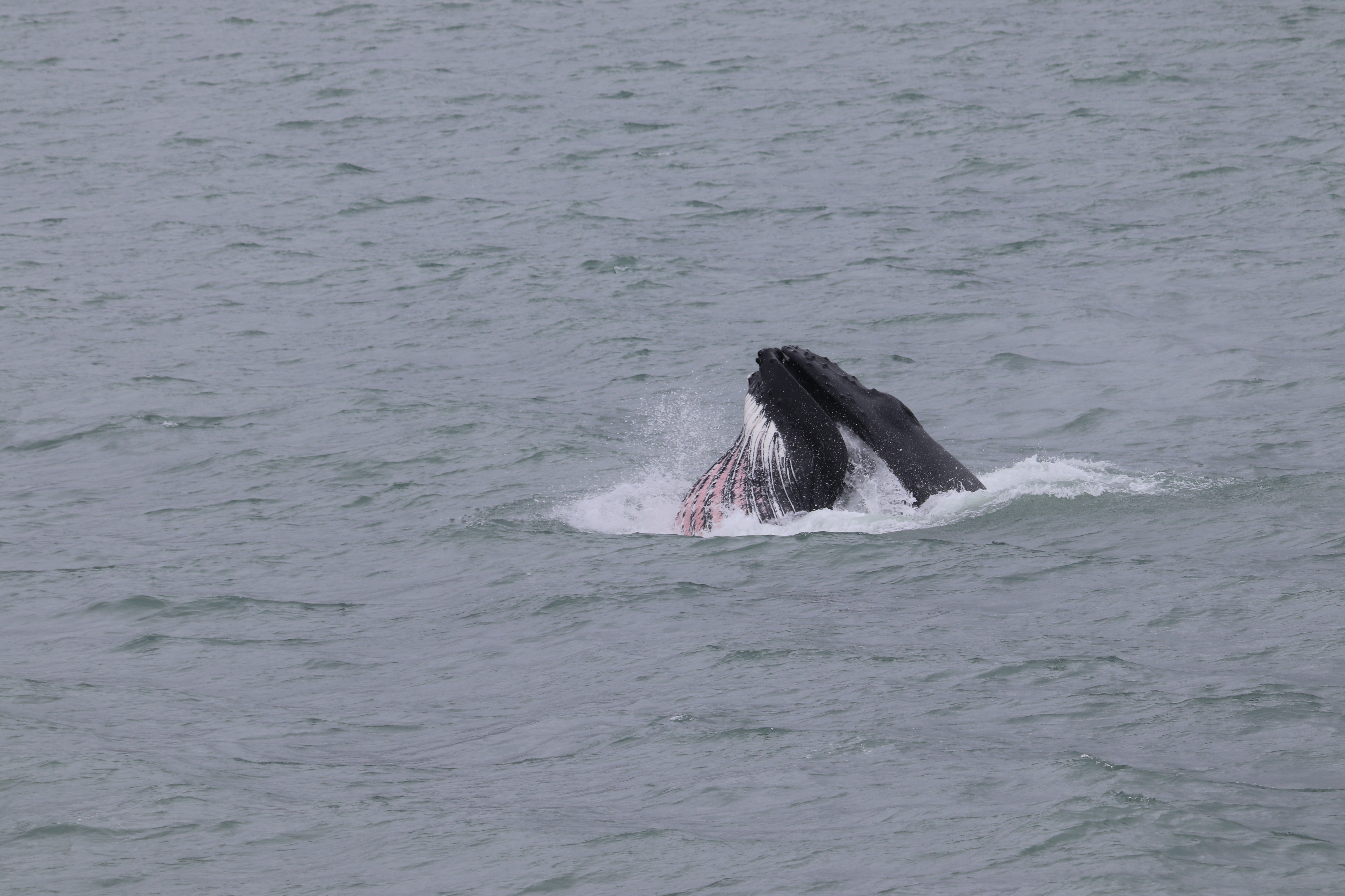 Humpback whale feeding. By taking in a huge amount of water it can’t distinguish between prey and plastics.